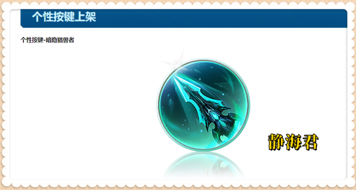 第一个是兰陵王--暗隐猎兽者皮肤的专属个性按键上架,首周150点券,后续恢复188点券。