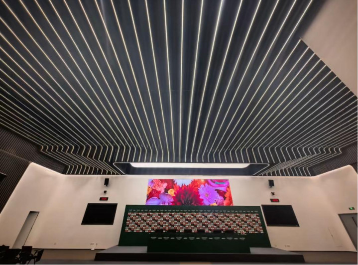 此外,灯光系统还支持智能控制和多功能调光,可根据不同的活动需求和场馆环境灵活调节,提供多种灯光模式的自由切换。在比赛时,灯光可以聚焦在场地中央,突出比赛的紧张氛围;在文艺演出时,灯光可以变幻出各种色彩和图案,营造出浪漫、梦幻的效果。