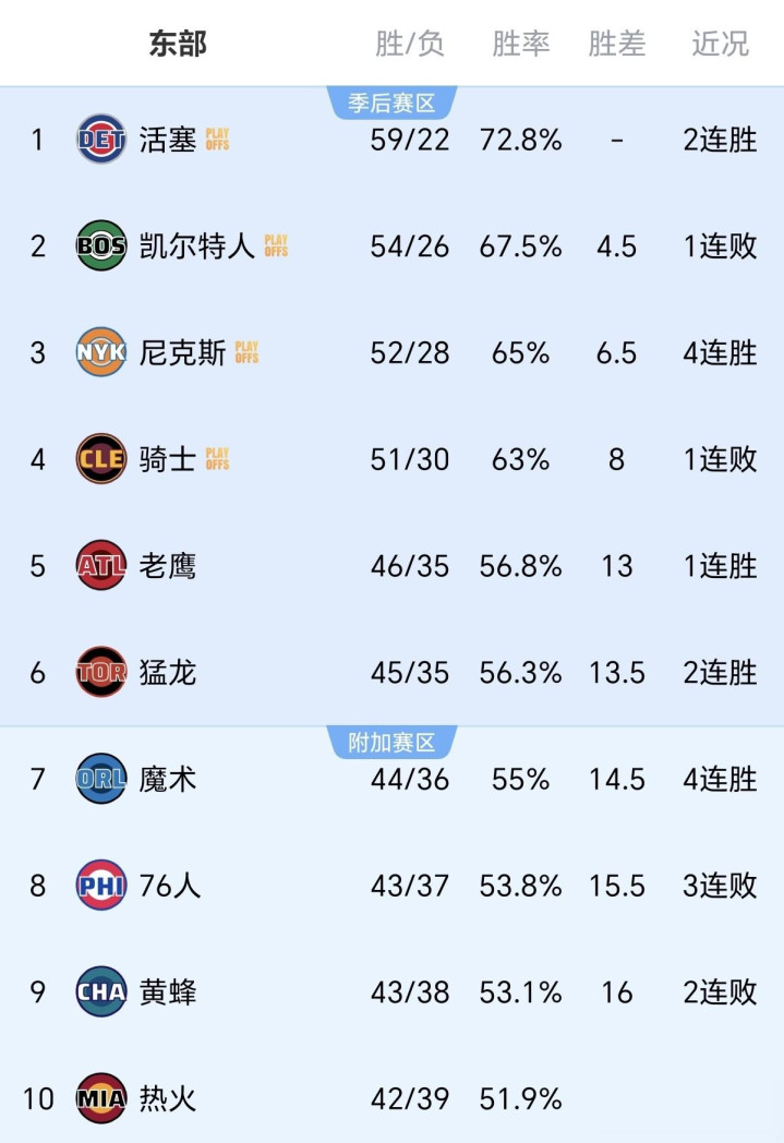 这样一来,骑士通过这场比赛之后完成了一箭双雕,既不用担心尼克斯连续输球把自己送至东部第三,也间接帮了老鹰一把,后者升至东部第五后将成为骑士队的最大潜在首轮对手。骑士队亲手锁定了东部的格局,基本确立了东部3-6位的排名。